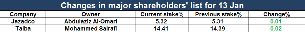 Riyadh-Mubasher: The major shareholders' list of some Tadawul-listed companies witnessed some changes on Wednesday, as shown in the following table: