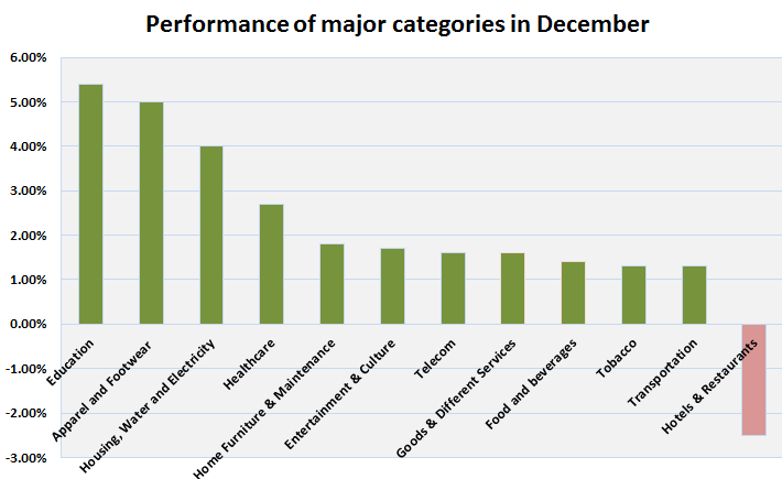 Riyadh-Mubasher: Saudi Arabia's inflation rose 0.1% month-on-month and 2.3% year-on-year in December, according to data released by the Central Department of Statistics & Information (CDSI).